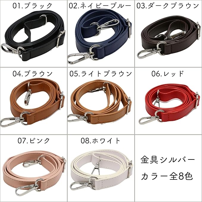 選べる8色。お好きなカラーで、簡単に付け替えが楽しめるショルダーベルトです。カジュアルにもキレイめにもこれ一つ。