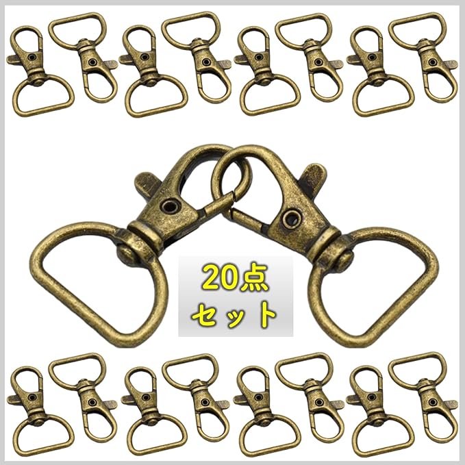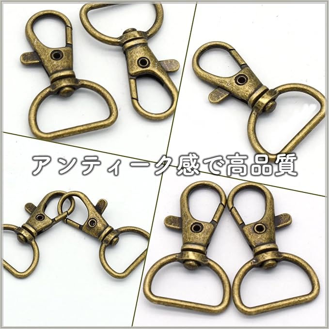 アンティーク風ゴールドのナスカンとなります。修理用交換部品としてお使い頂ける、大容量セットの回転式ナスカン20点セットです。