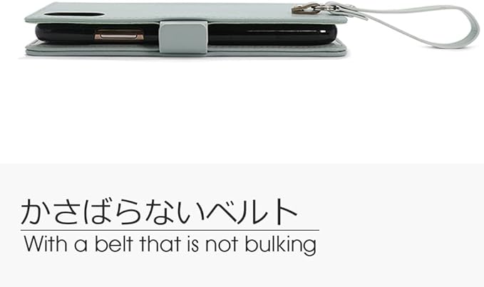 一般的なベルトよりも小さいため、かさばらずにしっかり閉めることができます。 また、ケースの側面についているので、内蔵されているマグネットによるカードへの影響も心配ございません。