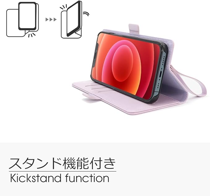 スマホスタンドのように端末をカバーに立てかけられるため、端末をテーブルに置いてハンズフリーで動画などをお楽しみいただけます。 コンパクトサイズのベルトなので、スクリーンにかぶり邪魔になる心配もございません。