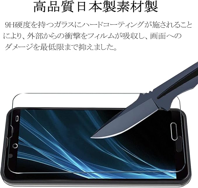 『 高品質日本製素材 』日本製素材の採用、9Hの高い硬度で、カッタ一などの鋭利なものを当てたとしても損傷なく長らく使えます。特殊な飛散防止設計により、万一割れてしまった際にもガラス片が飛散することなく、高い安全性を実現しています。