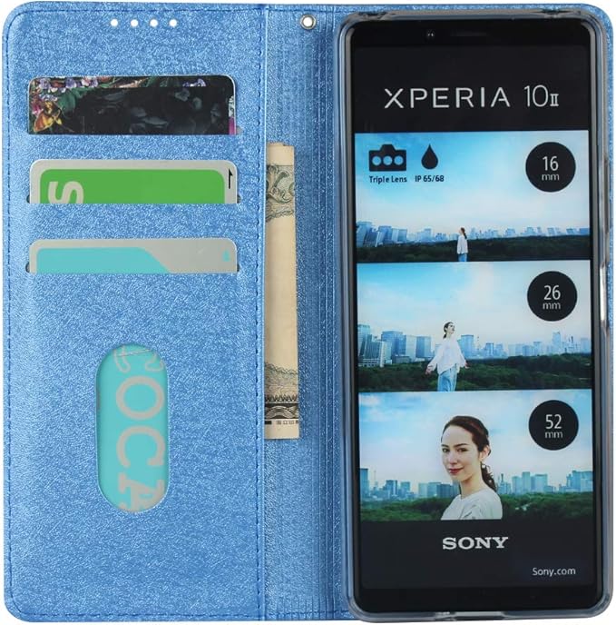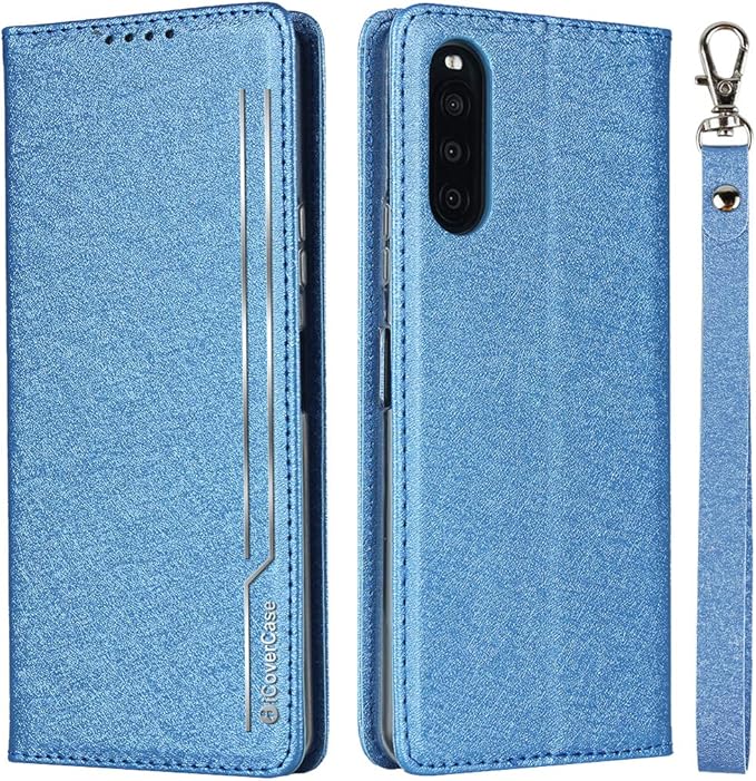 SONY Xperia 10 II ケース SO-41A docomo / SOV43 au 対応 ケース SO41A カバー ソニー エクスぺリア Xperia10 II 手帳型 エクスぺリア10 II スマホケース 携帯カバー case 【iCoverCase】 ベルトなし スマホケース スプラット同梱 スクラブ処理 砂地の質感 マグネット 【弱磁】 ブルー | oioioichan