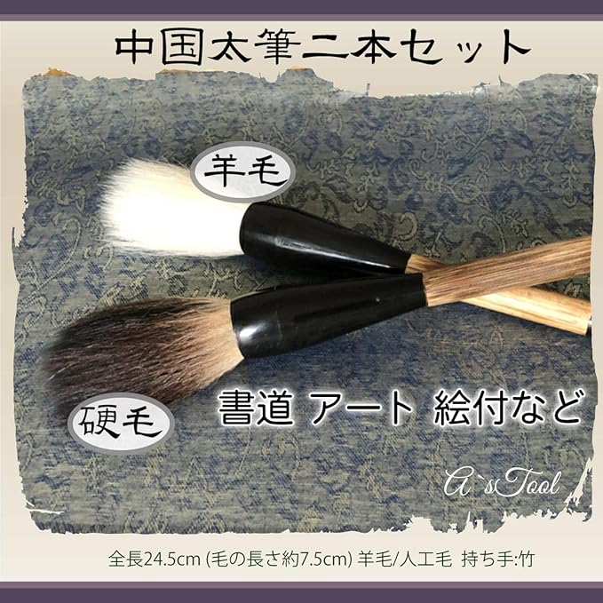 柔らかで馴染みやすい羊毛筆と力強い硬毛筆の2本セットです。