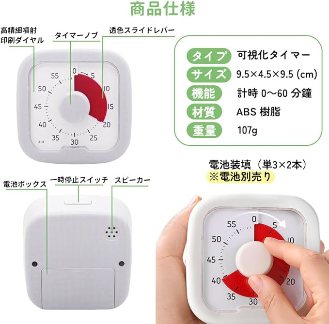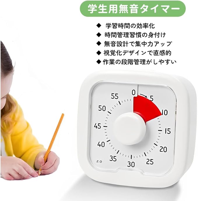 Kamiqiou タイマー 勉強 0~60分間 ポモドーロタイマー 学習 知育時計 じっかんタイマー こども 時っ感 ビジュアル 無音 キッチン オフィス 家庭 学校適用 ホワイト | oioioichan