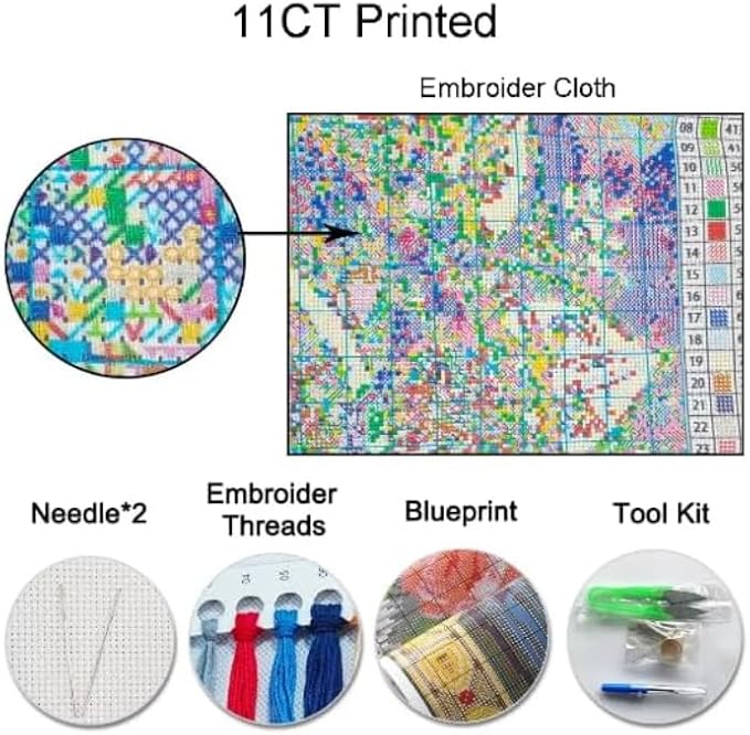 【豊富なセット】 DIYクロスステッチキット美しいのアートピースを作成するために必要なものがすべて揃っています。これには、40X 50 cm 刺繍布、針、糸、はさみ、シンブル、パターンピース、糸通し、糸除去、英語チュートリアルのバージョンが含まれます。個別に購入する必要はありませんので、指示に従って始めましょう!