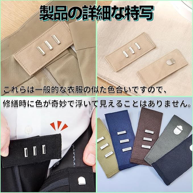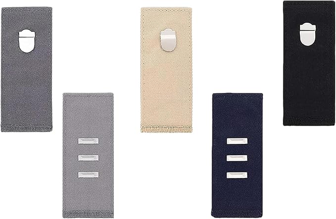 豊富なカラーバリエーション:5つ入り、長さ80幅35厚さ2mmのウエスト調整アジャスター。ウエスト調整アジャスターは、ブラック、ディープブルー、ダークグレー、ライトグレー、カーキの豊富なカラーバリエーションがあります。お好みの色を選んで、スタイリッシュなコーディネートを楽しめます。