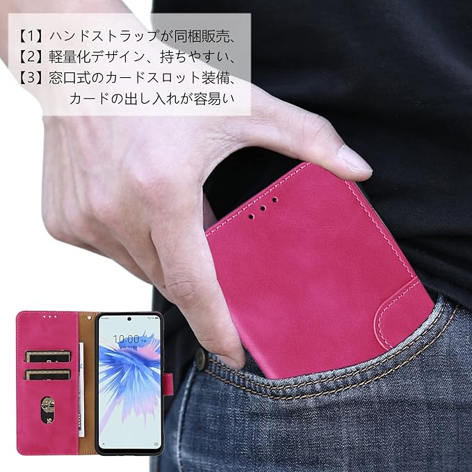 AQUOS wish 3 ケース 手帳型 【 ストラップ 一本付 】 適用 アクオス wish3 A302SH A303SH SH-53D SH-M25 ケース AQUOSwish3 SH 53D SH M25 スマホケース ウィッシュ3 携帯カバー case AIPITORR スタンド ストラップ付き 窓口式 カード入れ マグネット 手帳ケース カードケース つや消し 落ち着いた色 ローズレッド | oioioichan