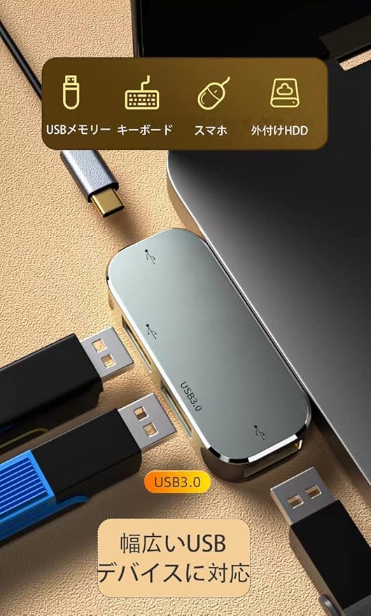 【高速データ転送】 USB C 1x USB 3.0を提供し、最大5Gbpのデータ転送をサポートし、数秒で映画全体を転送できるようになります。ハードドライブ、プリンター、MP3プレーヤー、携帯電話、マウス、キーボードなどの複数のUSB-Aデバイスを接続するのに非常に適しています。デバイスを何度も抜き差しする手間を省きます。】※ご注意:Type Cポート充電不可です、データ転送のはOKです。