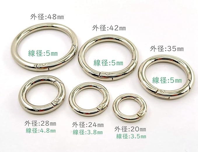 【ご使用用途様々】キーホルダーパーツ、キーケース金具、キーホルダー金具に バッグ リングチャーム、バッグ 持ち手リングに バッグやスマホの持ち手・ショルダーストラップの取り付けにもご使用いただけます