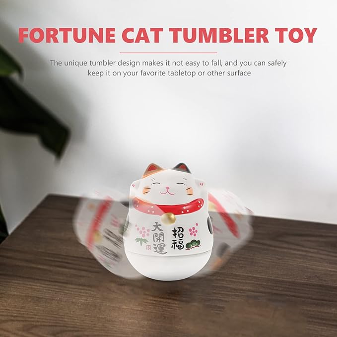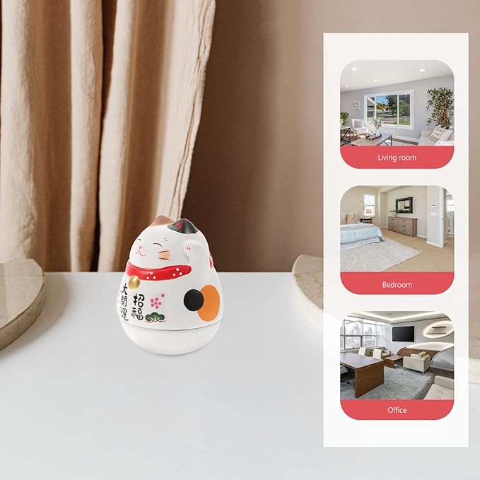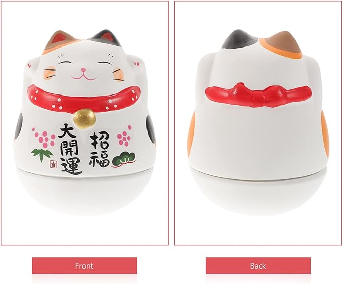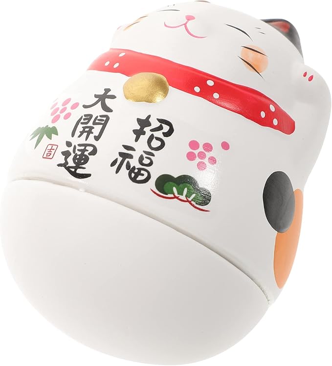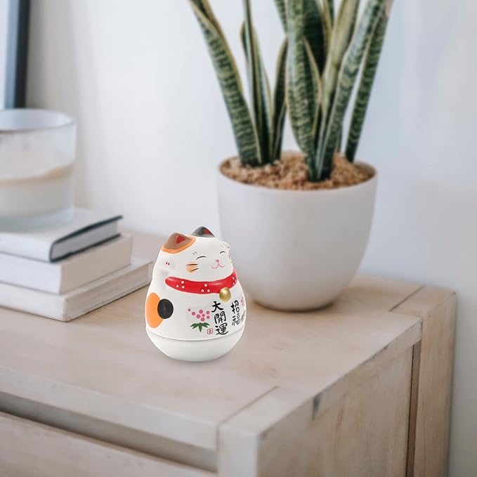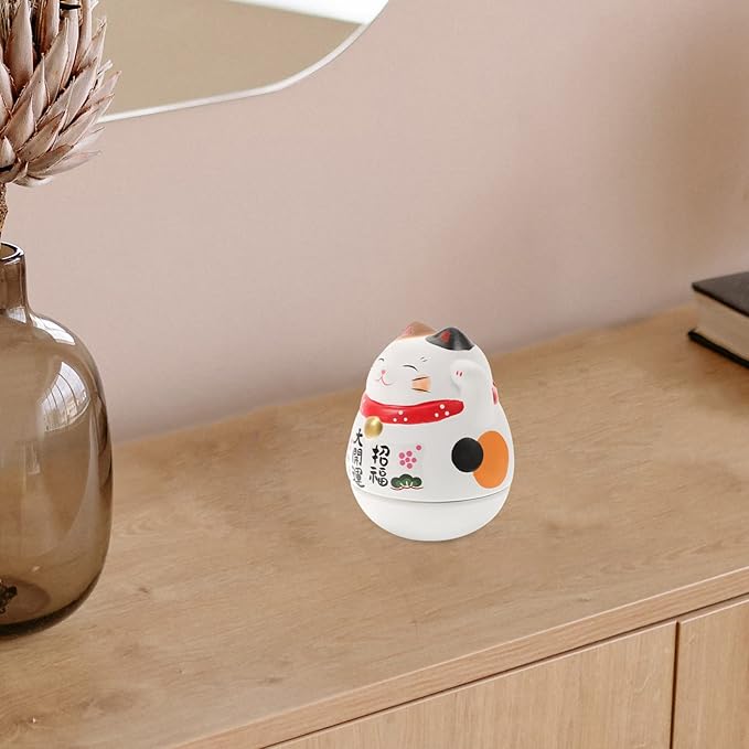 STOBOK 招き猫 置物 セラミック ねこ飾り オブジェ 起き上がりこぼし 陶器 開運 招財 風水 グッズ 玄関 部屋 装飾 工芸品 幸運 インテリア飾り 縁起物 贈り物(黒い耳) | oioioichan