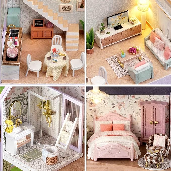 ♫♫♫【重要事項】DIYミニチュアドールハウスキットは、付属品が完全で欠品がないことを確認するために、納品前に100%注意深くチェックされています。 組み立ての際にご不明な点がございましたら、お気軽にお問い合わせください。問題が発生した場合は、できるだけ早く解決いたします。 また、シリコン液体接着剤と電池2個(AAA型)は航空輸送が禁止されているため、ご自身でご用意いただく必要があります.4歳以上対象