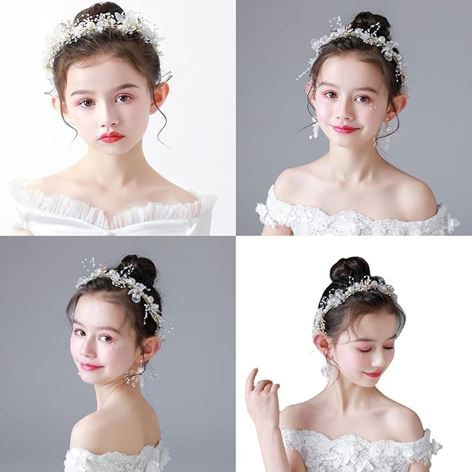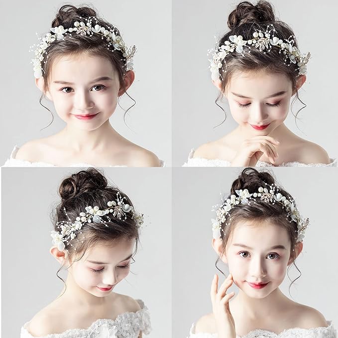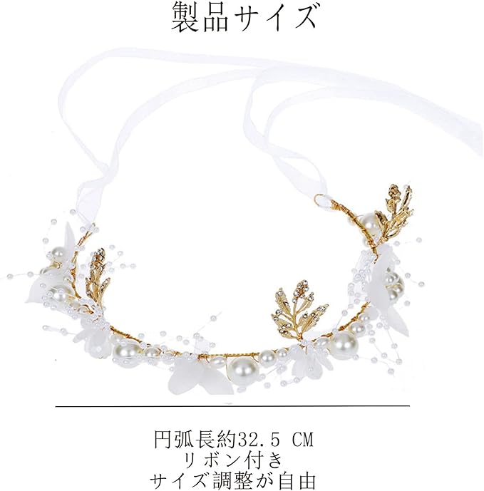 RICISUNG 髪飾り ヘアアクセサリー カチューシャ 女の子 ヘッドドレス 結婚式 子供 花嫁 花冠 クラウン フラワー ヘアバンド パーティー パール ウェディング 発表会 入学式 卒業式 演奏会 ステージショー ピアノ演奏 ホワイト | oioioichan