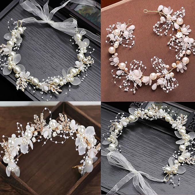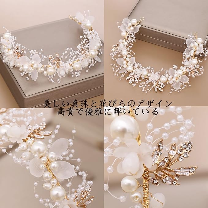 【発表会の髪飾り】この手作りの髪飾りは花、真珠、合金で作られています。私たちの優れた手作業材料と優れた技術はあなたの愛になります。頭につけるとまぶしくなります。日常的な服装や各種発表会、演出、結婚式に適しています。