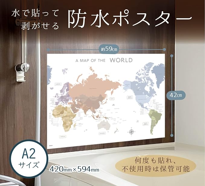 水で貼って剥がせる(繰り返し使える) 防水ポスター(破れにくいユポ紙使用)