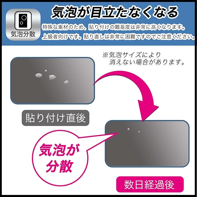 ✅ 貼り付け簡単 :フィルムは、接着面に気泡が入りにくい特殊な自己吸着タイプとなっています。素材に柔軟性があるので、貼り付け作業も簡単にできます。