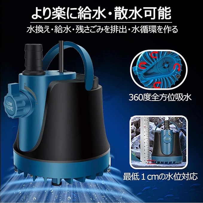 THYESCOM 水中ポンプ 低水位対応 循環ポンプ 吐出量2500L/H 最大揚程2.5M 給水・排水ポンプ 吐出量調整可能 ミニポンプ 静音設計ウォーターポンプ 水耕栽培水族館水換え 養殖場適用(2500L/H) | oioioichan