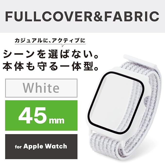 エレコム Apple Watch (アップルウォッチ) ケース カバー バンド一体型 45mm [Apple Watch 8 7 対応] ガラス フルカバー ファブリック ホワイト AW-21ABCFBWH | oioioichan