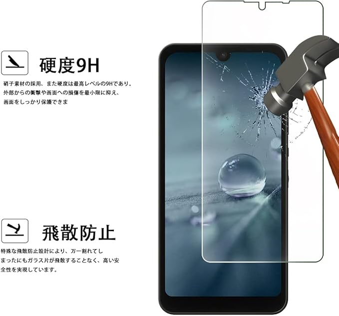 【硬度9H・飛散防止】表面硬度指数は9Hで、日本製旭ガラスを使用し、傷がつきにくい強化ガラスです。地面に落ちてもその衝撃力を受け、スマートフォンを守ります。カバンの中の鍵や小銭、砂利や砂など様々な傷から守ります。日常の様々な傷から守ります。外部からの衝撃をフィルムが吸収し、画面へのダメージを最低限まで抑えました。万が一割れても、抗粉砕フィルムコーティングの加工により破片の飛び散りもしっかり抑えられますご愛用のスマホをしっかり守ります。
