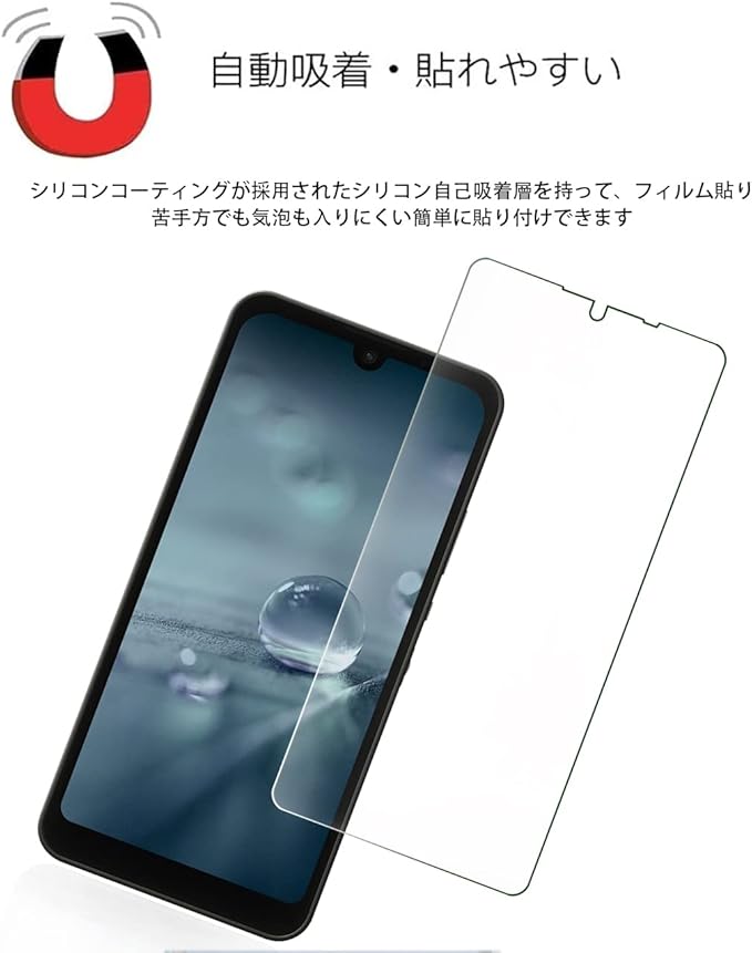 【撥水撥油性 & 指紋防止】 ガラスフィルムは疎油性コーティングがされているため、指紋を防ぎ、美しい画面で滑らかで快適な操作が可能です。ームアプリにも最適、いい気持ちになります。指紋や油分 水分の汚れが付きにくい、汗や皮脂、化粧品等が画面についてしまってもさっとひと拭きするだけです。付着した汚れもふき取りやすくメンテナンスも簡単です。スムースな操作を実現 スマートフォンと密着するので、、表面の手触りがスムースで 高い操作性を実現します。一般的なフィルムのざらざらした感触が一切なし。