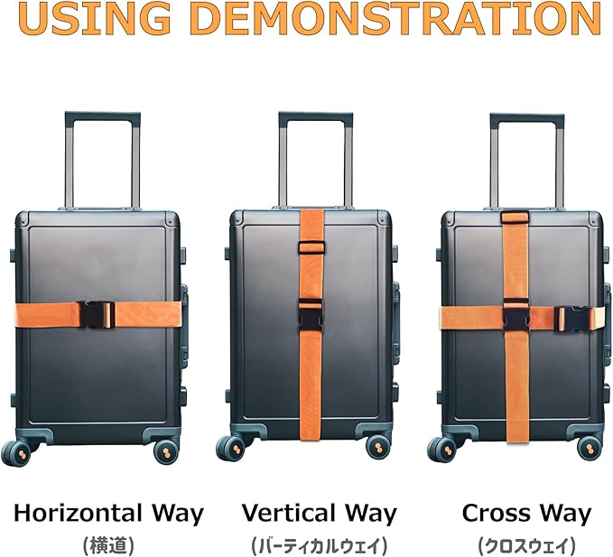 ✅【適用】- 出張、旅行中荷崩れ防止のスーツケースベルトとして、または荷役作業、倉庫等の棚の荷崩れ防止や、資材の結束用、カーラック、キャリアーの荷物を固定する補助ベルトとして様々なシーンで大活躍します