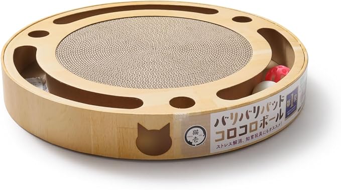 【直径40cmの大きめサイズ】バリバリパッドコロコロボールは、直径40cmの大きめサイズです。 そして中央部分はダンボールつめとぎパッドになっています。つめとぎ部分も大きめなので、のびのびつめとぎできます。 遊べてつめとぎもできて、猫ちゃんもごきげんに。