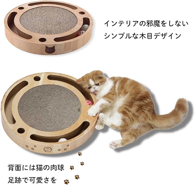 【コロコロボールが猫ちゃんの狩猟本能を刺激します】まぁるいつめとぎをぐるりと囲む縁部分には2種類のコロコロボールが入っています。 白色の軽いボールとカラフルな鈴入りボール。猫ちゃんが軽くタッチすると、コロコロ~と転がるボールたちに、猫ちゃんの狩猟本能も 刺激されること間違いなしです。※カラフルボールのお色はお選びいただけません。