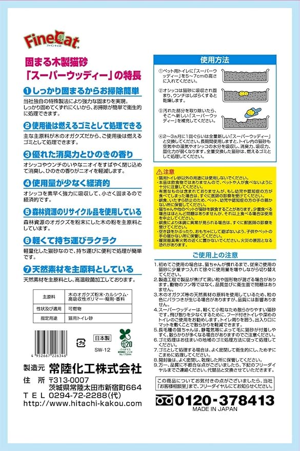 木の粉を主原料とした固まる木製猫砂です