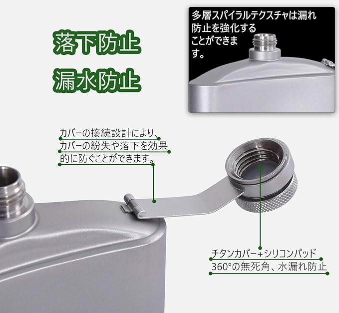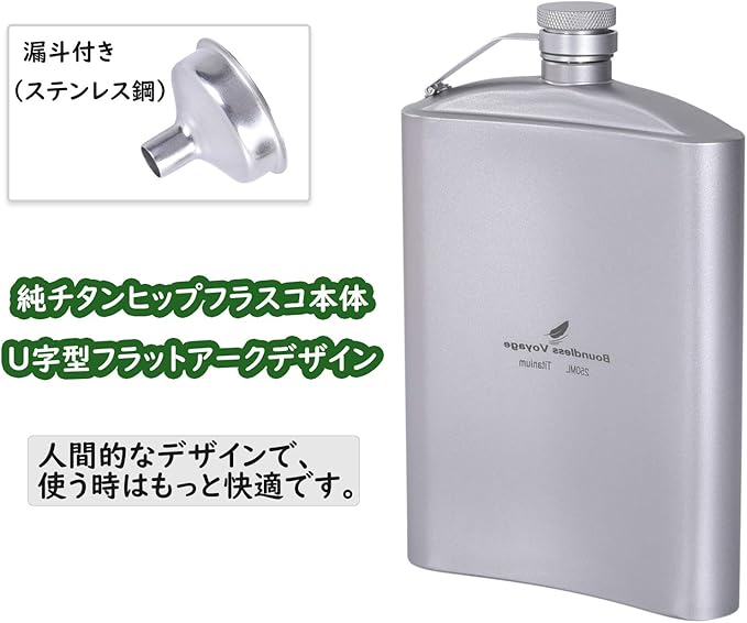 セット内容:チタン製ヒップフラスコ+お猪口(チタン製)+漏斗(ステンレス鋼)。(初期不良は30日間無料交換.があるので安心です。)