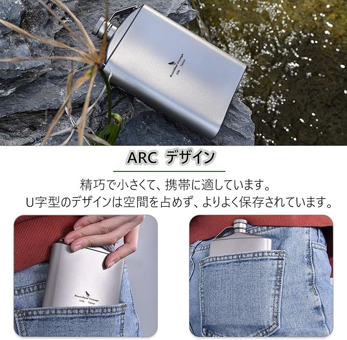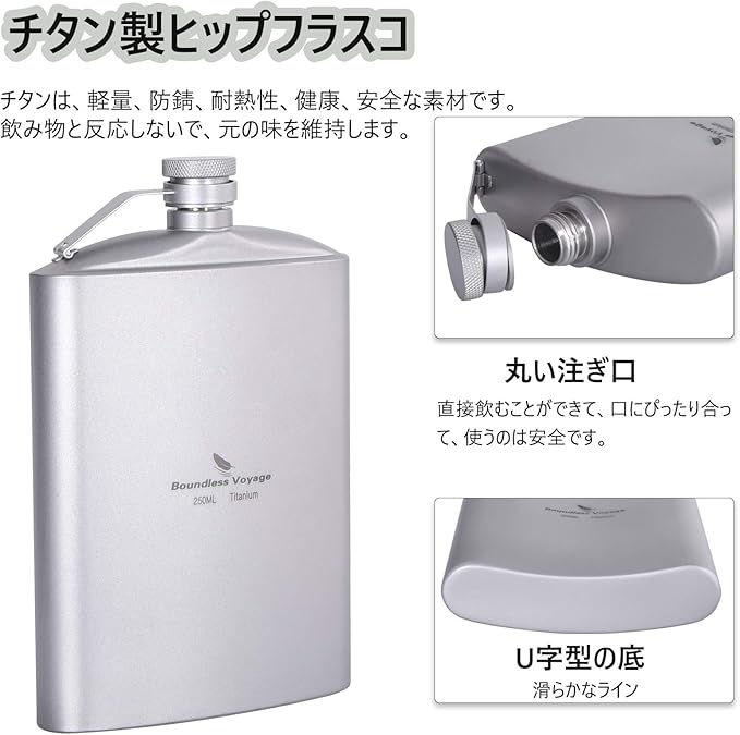 チタン製ヒップフラスコは超軽量、高硬度、絶対に錆びない、コンパクト、酸とアルカリからの耐腐食性、耐久性のある安全で健康的な材料。