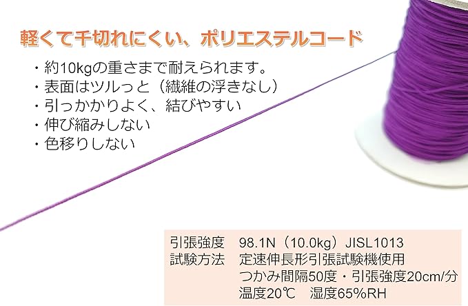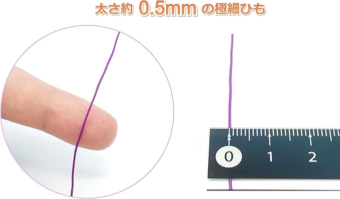 日本製の約0.5mm程の超極細ひも。千切れにくく、引っかかりが良いので結びやすい紐です。