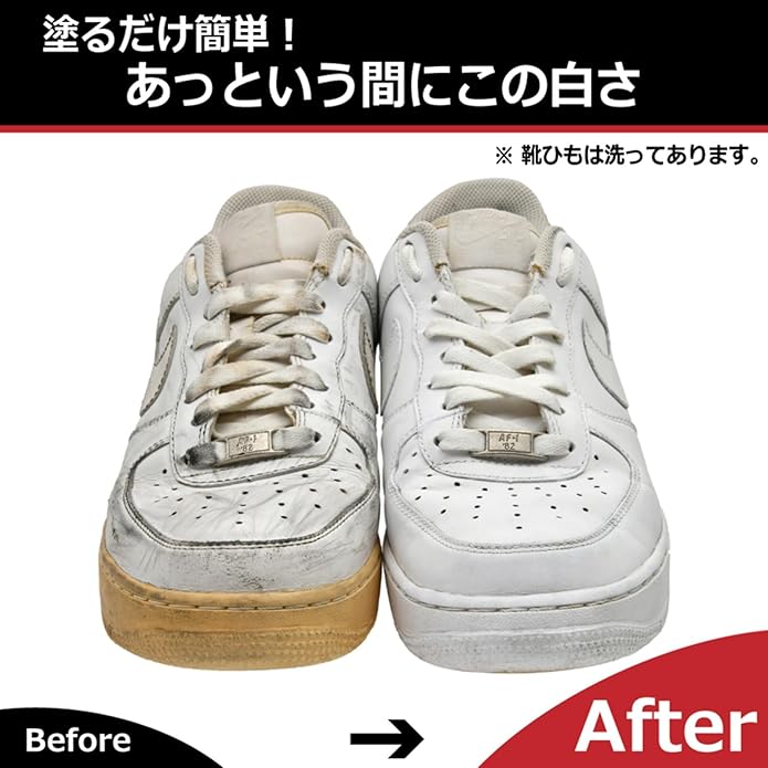 【スニーカーの白さが復活!塗るだけ簡単、ホワイトニングリキッド】一般的な靴クリームでは隠せないキズや、こすれ・色あせにもしっかり定着して、白さをよみがえらせます。