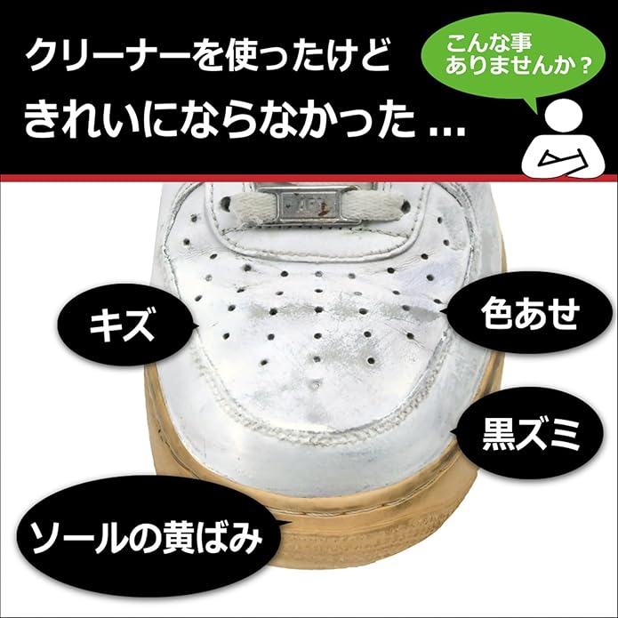 【がんこな 汚れ や 黒ずみ 色落ち 色あせ に困っている方は必見!】クリーナーや消しゴムでは落ちない、ソールの 黄ばみ キズ もしっかりカバーします。