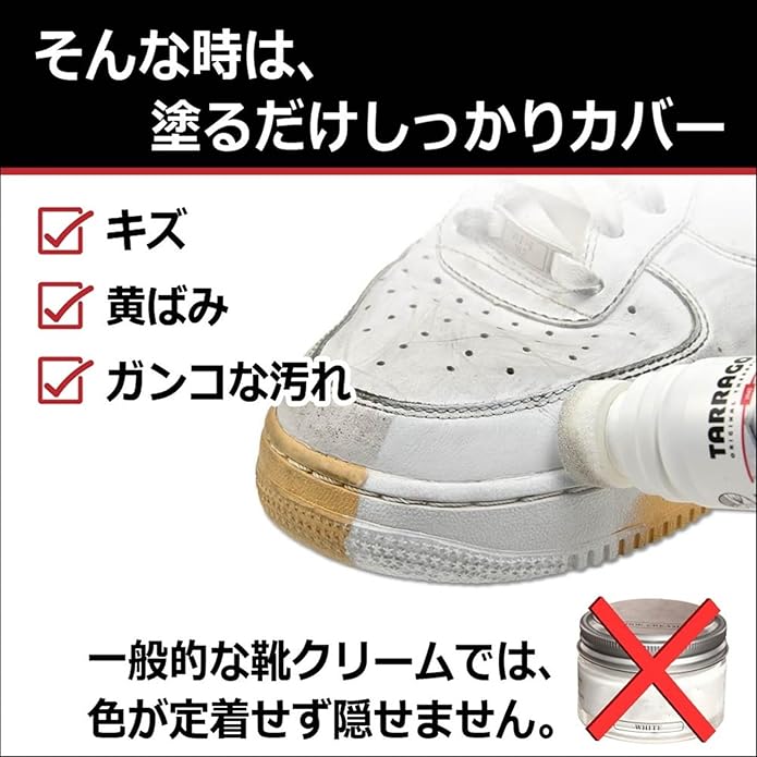 [Tarrago] スニーカー 白さ復活 スーパーホワイト 靴クリーム 白 リキッド 傷 汚れ ソール ミッドソール 黄ばみ落とし 黒ずみ 着色 塗装 補修 ホワイトナー ホワイトニング クリーナー 革 合皮 ゴム 75ml | oioioichan
