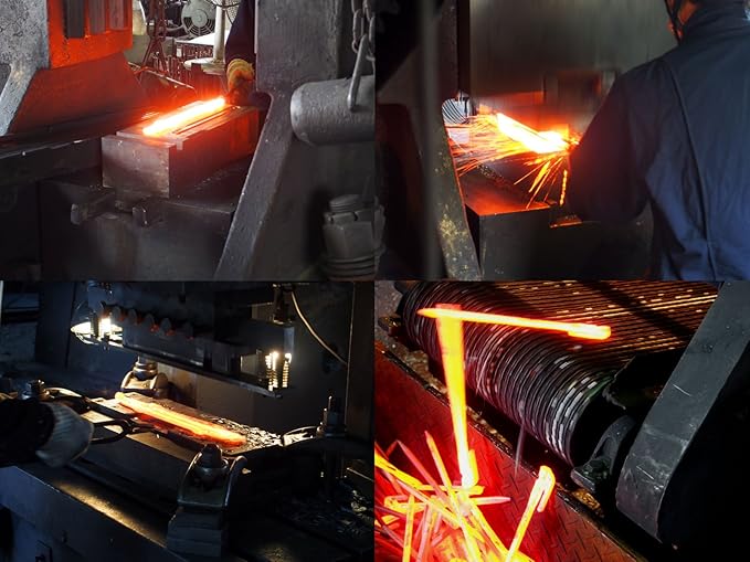 素材の丸い鋼材を約1100℃になるまで真っ赤に熱し、約1トンという強力な力で一気に断面を楕円形に潰した鍛造ペグ。熱した鋼材に強力な圧力を加えることによって、優れた強度を持つペグが完成します。
