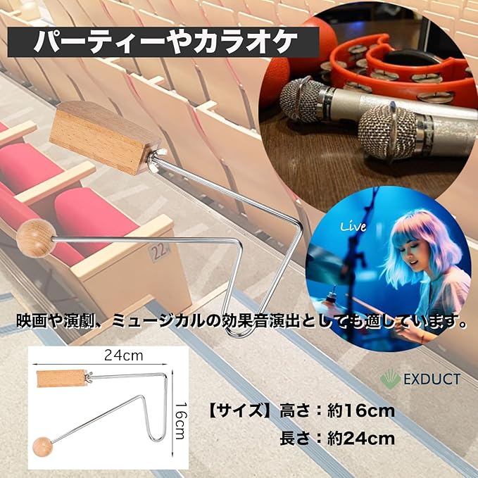 独特な音でパーティやカラオケを盛り上げる小道具としてお使いいただけます。映画や演劇、ミュージカルの効果音演出としても適しています。子供のおもちゃとしてプレゼントするのもオススメです!