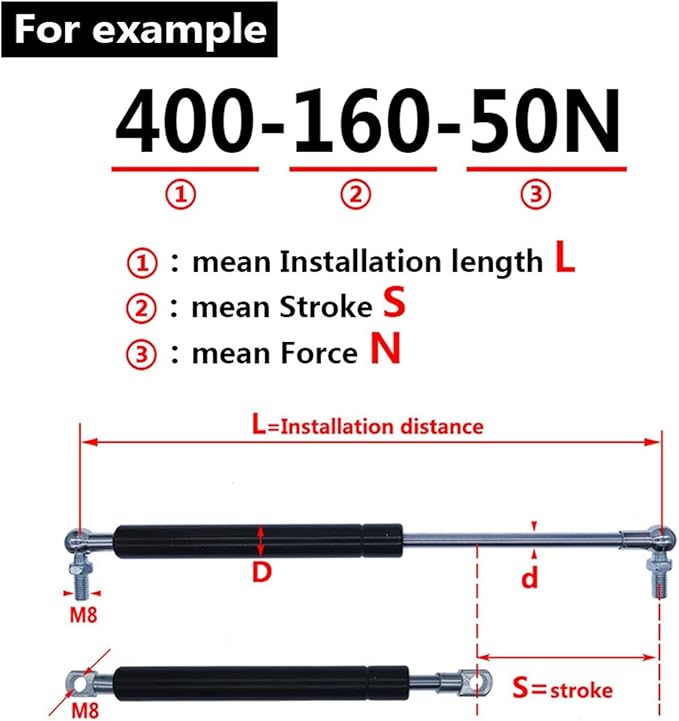 18 * 8リフト支持ガススプリングロッド400mm穴中心距離160mmストローク食器棚ヒンジガススプリングフォース50n-500n / 5kg-50kg (Length : 400-160-400N, Outer Diameter : E bracket) | oioioichan