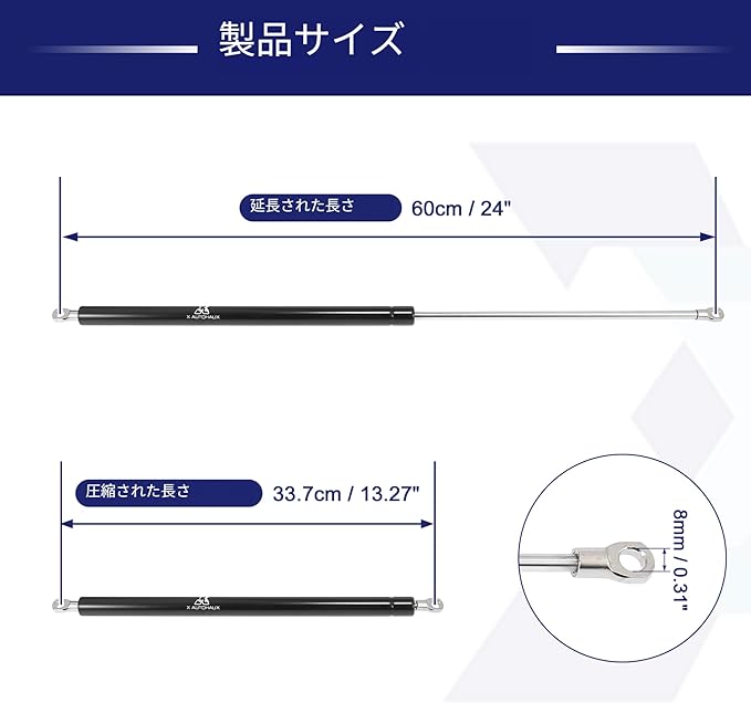 【サイズ】長さ:拡張長さ(中心から中心):60cm / 24 "、圧縮長さ(中心から中心):33.7cm /13.27"。
