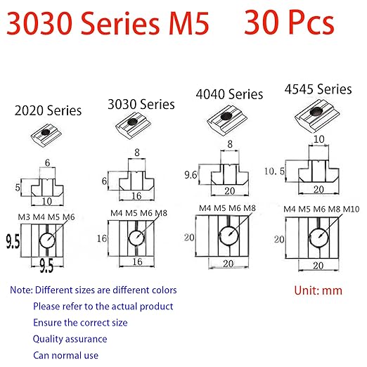 30個 3030シリーズ Tスライディングナット ハンマー ナットブロック スクエアナット M5 Tナット 3030アルミ押出プロファイル Tスロット 8mm CNCルーター ビルドレール 3Dプリンター (m5) | oioioichan