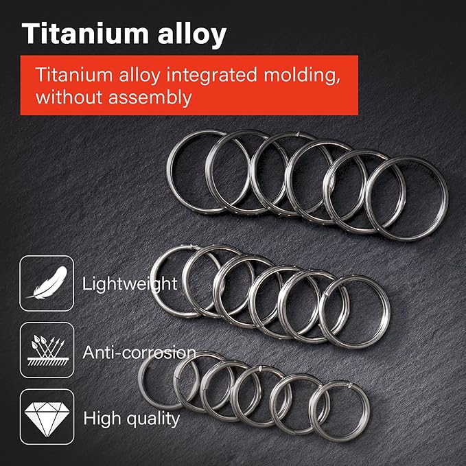 3サイズのスプリットキーリング:このチタンキーリングのサイズ:18 x MecArmyチタンスプリットリング(0.43" 6+0.47" 6+0.55 " 6)、厚さ:0.08インチ、キーチェーンにわずかな重量を追加し、簡単で便利 持ち運び、鍵の整理、ガジェットの飾り付け。