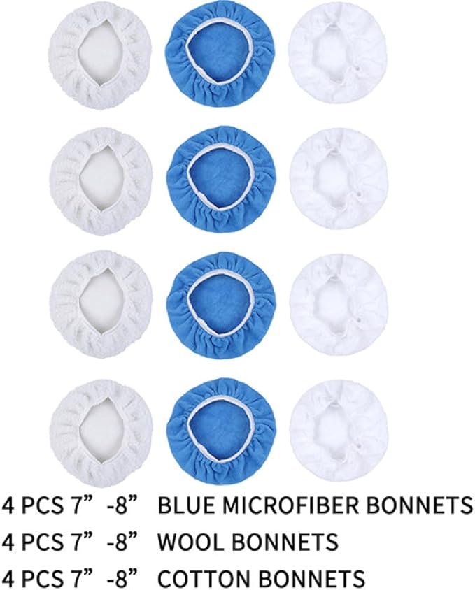 研磨ボンネット6個マイクロファイバーオービタルバッファー5-6" 7-8" 9-10" 3サイズポリッシャーパッドカバーカーワックスがけアプリケーターボンネット、12個、7,8MIX | oioioichan