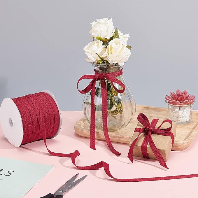使いやすさ:ギフトラッピング用のコットンリボンは、すべての装飾やアクセントの仕事に十分であり、使いやすく、ギフトパッケージやDIYクラフトプロジェクトに結び付けたり接着したりすることができます。 はさみだけで、必要に応じて使いやすいサイズにカットできます。