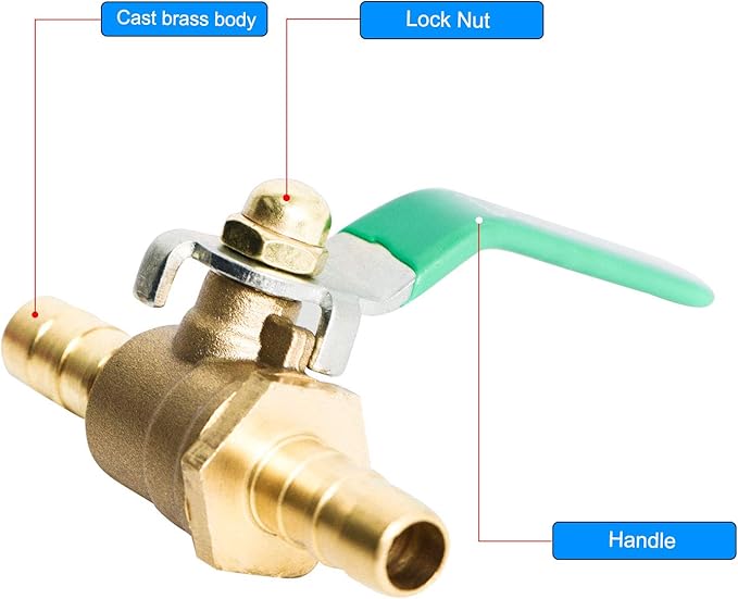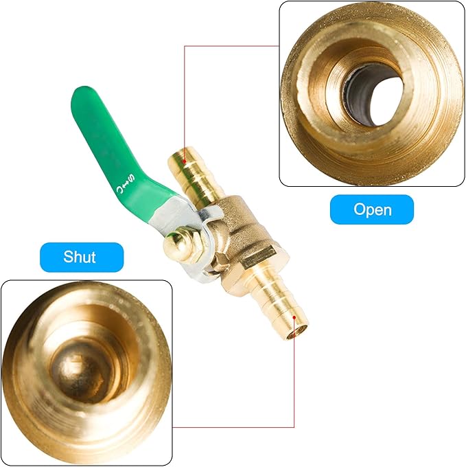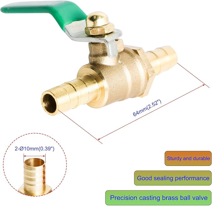 Aopinボールバルブ真鍮10mm / 2/5" ホースバーブ x 10mm / 2/5" ホースバーブ バルブ水、油、ガスの液体を遮断、ビニールハンドル付き、に適しPEX、銅、HDPE2 個 | oioioichan