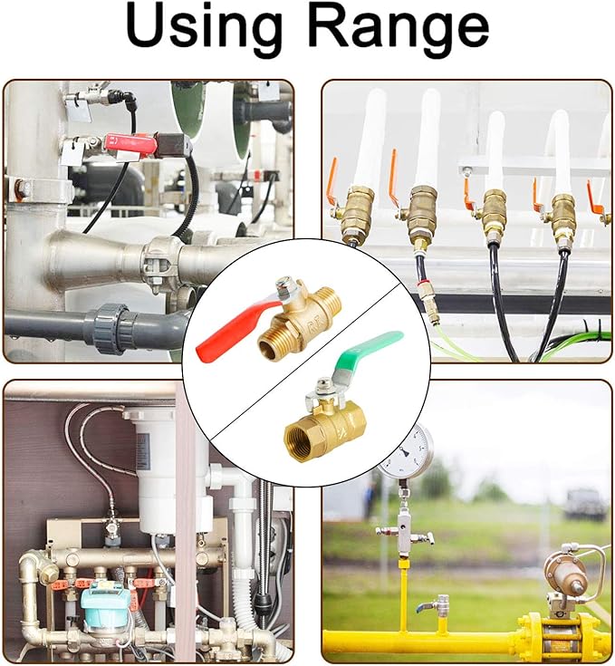 幅広い用途:ボールバルブは、圧縮空気、水、油、ガス、その他の流体に適しています。 セメント、砂、ショットブラストなどには適していません。花や植物、下水管、暖房/天然ガス/空気/石油/ガス/配送システム、および計装機器の灌漑に非常に役立ちます。 圧力定格:400psi。