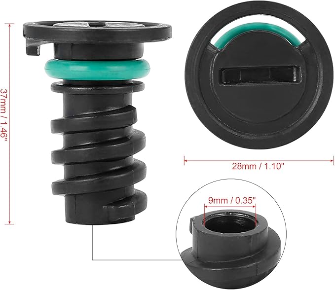 [規格] オイルドレンプラグはABSの素材で作られています。 カラーはブラックで、その内径は 9mm.