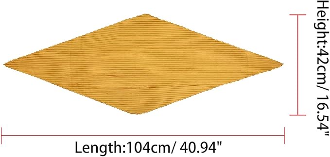 ひし形、サイズ:104 x 42cm、プリーツ展開なしサイズ:70 x 70cm。色:ピンク、ホワイト、パープル、イエロー、グリーン、カーキ、グレー、ブルー、ネイビーブルー、ブラック、ダスティピンク、キャラメル、レッド、ワインレッド。