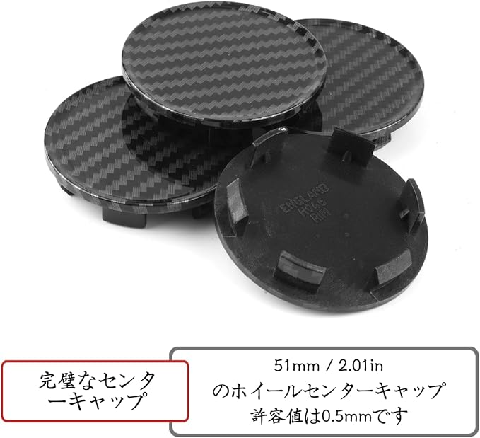 「製品に含まれるもの」4つの車のハブキャップ
