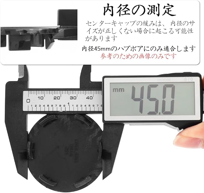 「サイズ」外径:51mm、センターボア径:45mm、ラベリング径:46mm、高さ:10mm、ツメの長さ:7.5mm、ツメの数:6個 ※注意: ご自身のお車に取り付けできるかどうか、サイズが合っているかなどをご確認していただいてからご購入してください。不明な場合にはお問い合わせください