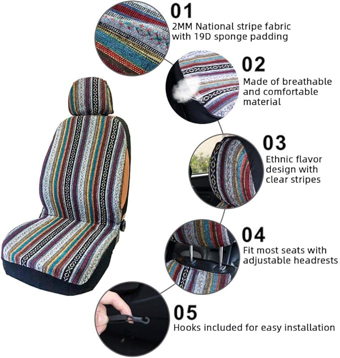 カラフルなエスニックデザインで、車のフロントシートを美しくするのに最適です。