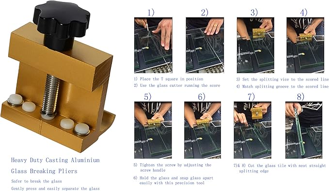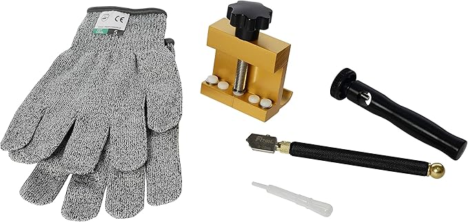 4ピースガラスタイル切断ブレイキングツールセット、ガラスカッターおよびブースター、ガラスランニングブレイキングスプリットバイスプライヤー、EN388カット保護手袋、プロフェッショナルガラスタイルカッティングランニングツール4-パック | oioioichan