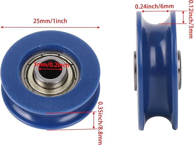 cnbtr 5 mmボアUグルーブポンポン付きプーリホイールwithスチールベアリング4個パック 5*25.5*8.8mm M6180521094